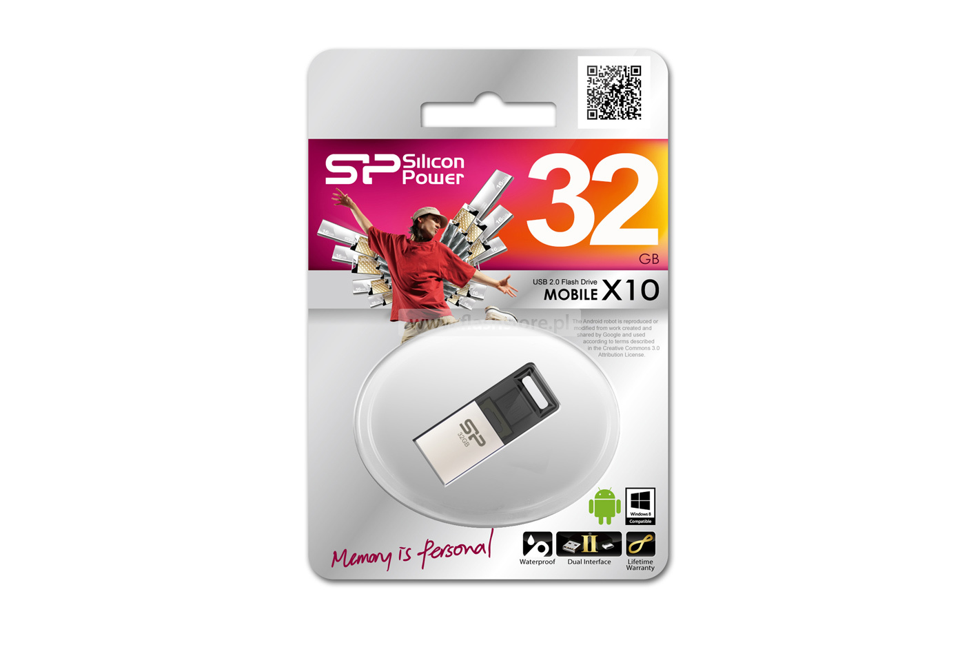 Built in with dual connectors, SP/ Silicon Power Mobile X10 creates an infinite possibility for storage capacity. A USB port at one end can be applied to USB supported PC or laptops functioned as a USB flash drive; while on the other side, a micro-USB interface can be connected to your Smart Handheld devices for seamless and timely data transmission.